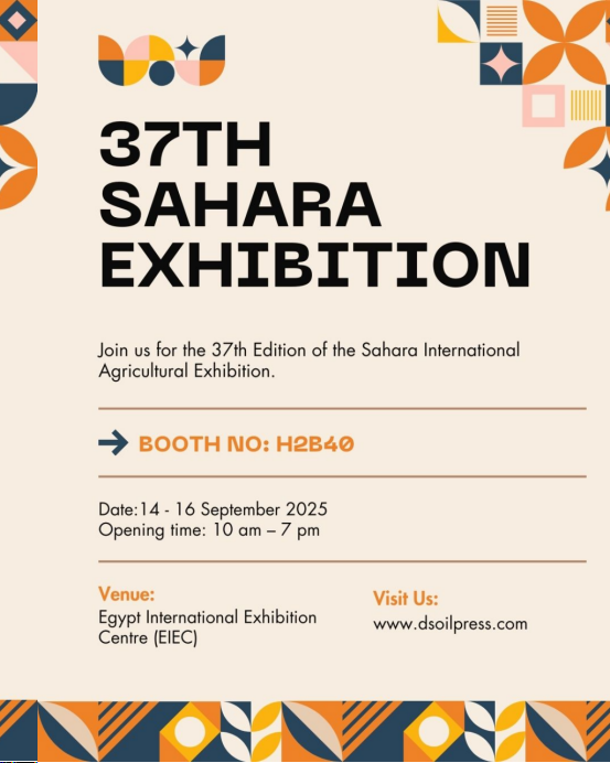 鄭州鼎盛機械有限公司,將于2025年9月14至16日在埃及國際展覽中心,第37屆撒哈拉國際農業(yè)展覽會參展,和各國友人交流分享榨油機各種知識。